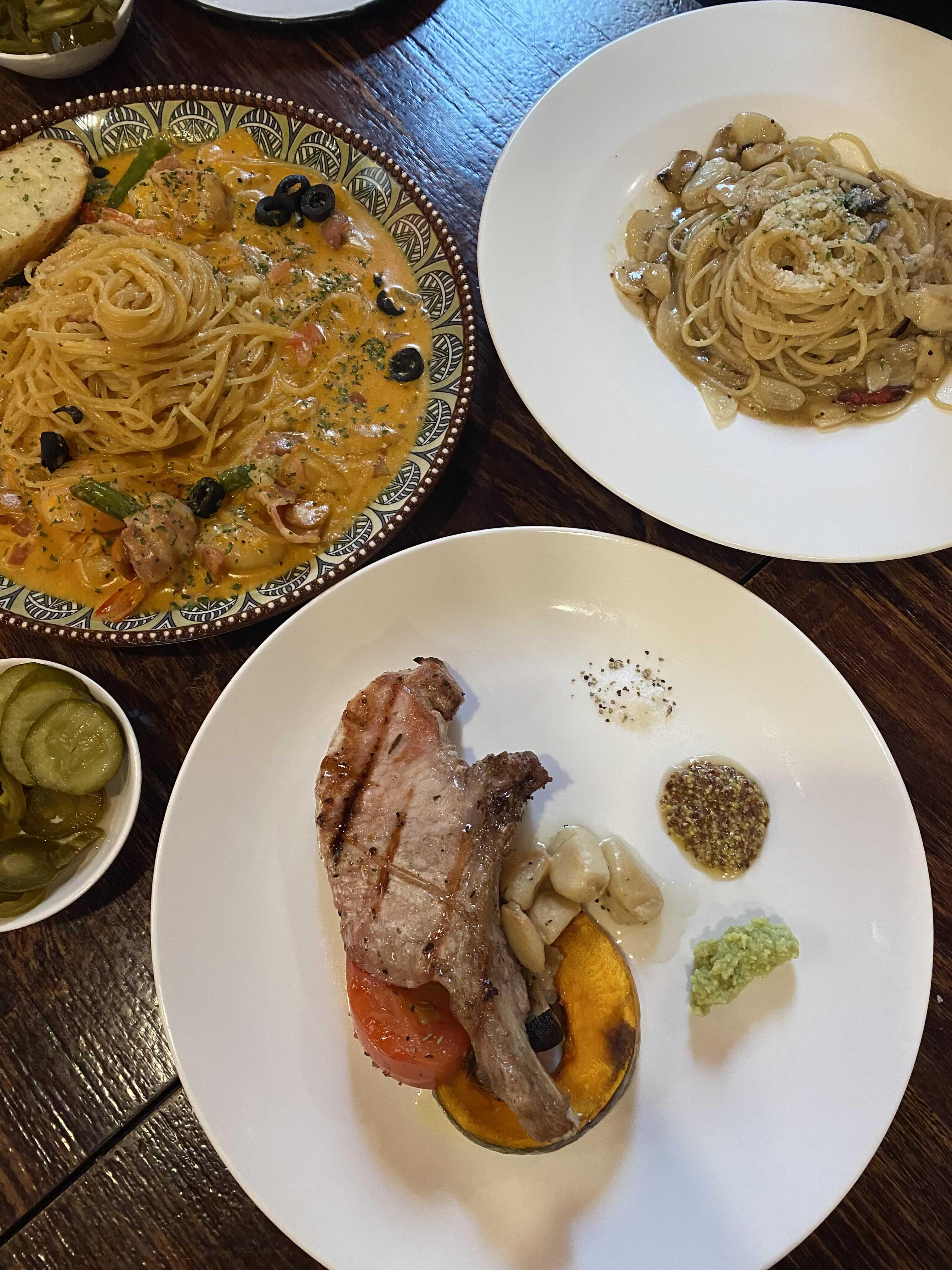 여기 알리오올리오 진짜 맛집이네요..? 그리고 감자튀김도 존맛탱. 피자는 쏘쏘.