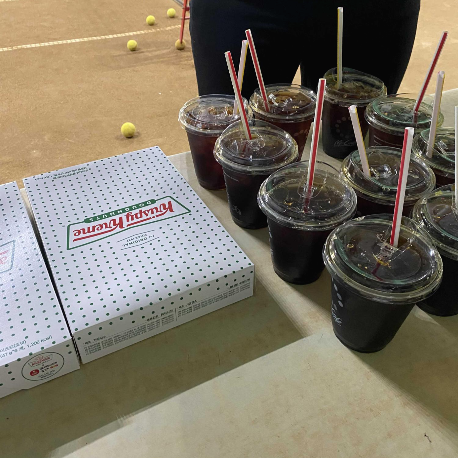 빼빼로데이 전,,, 테니스장 사람들에게 도넛과 맥커피를 돌렸는디 코치님들이 간장국물 사오지 말라고 했다,,,,,, 션며