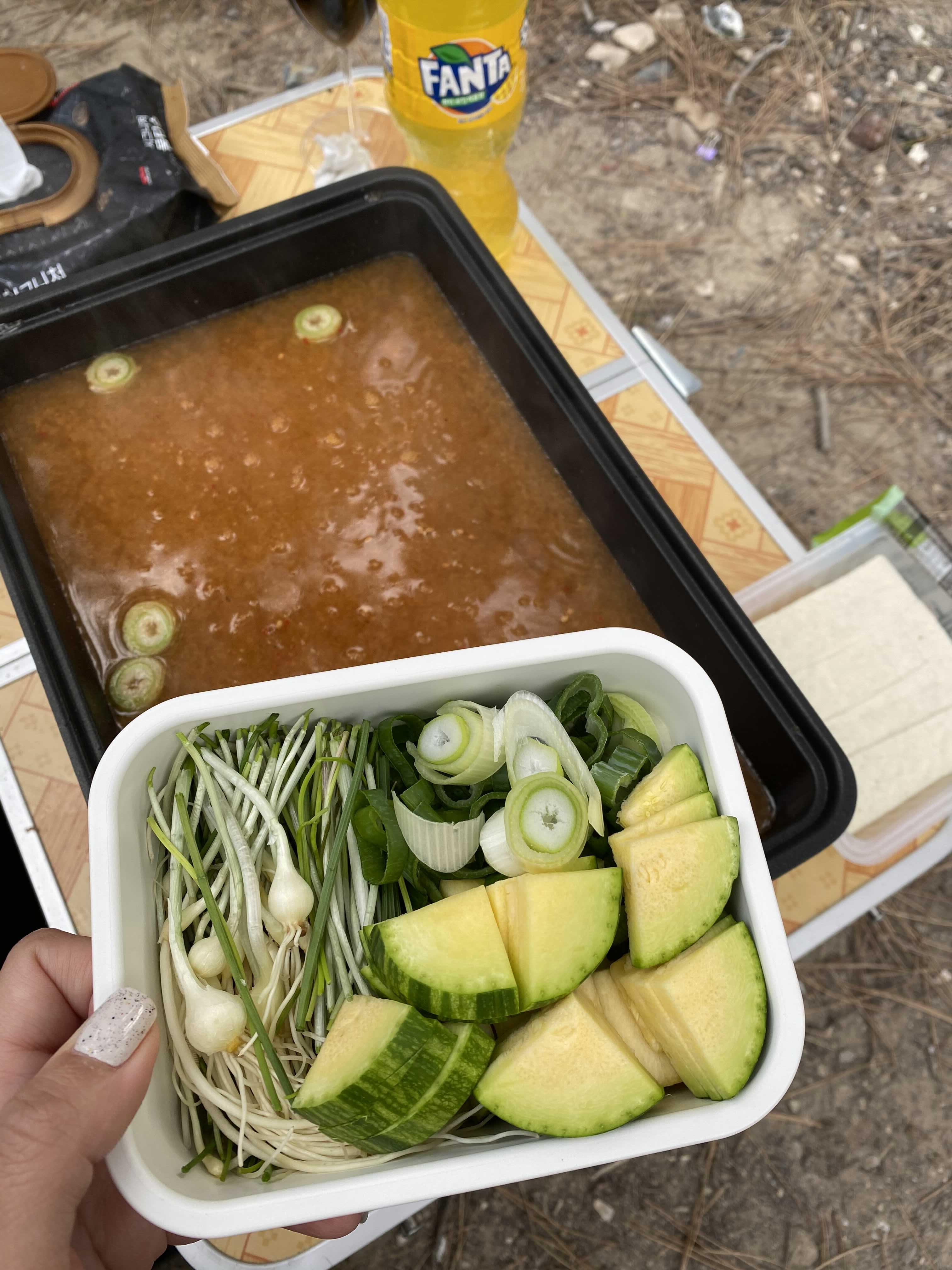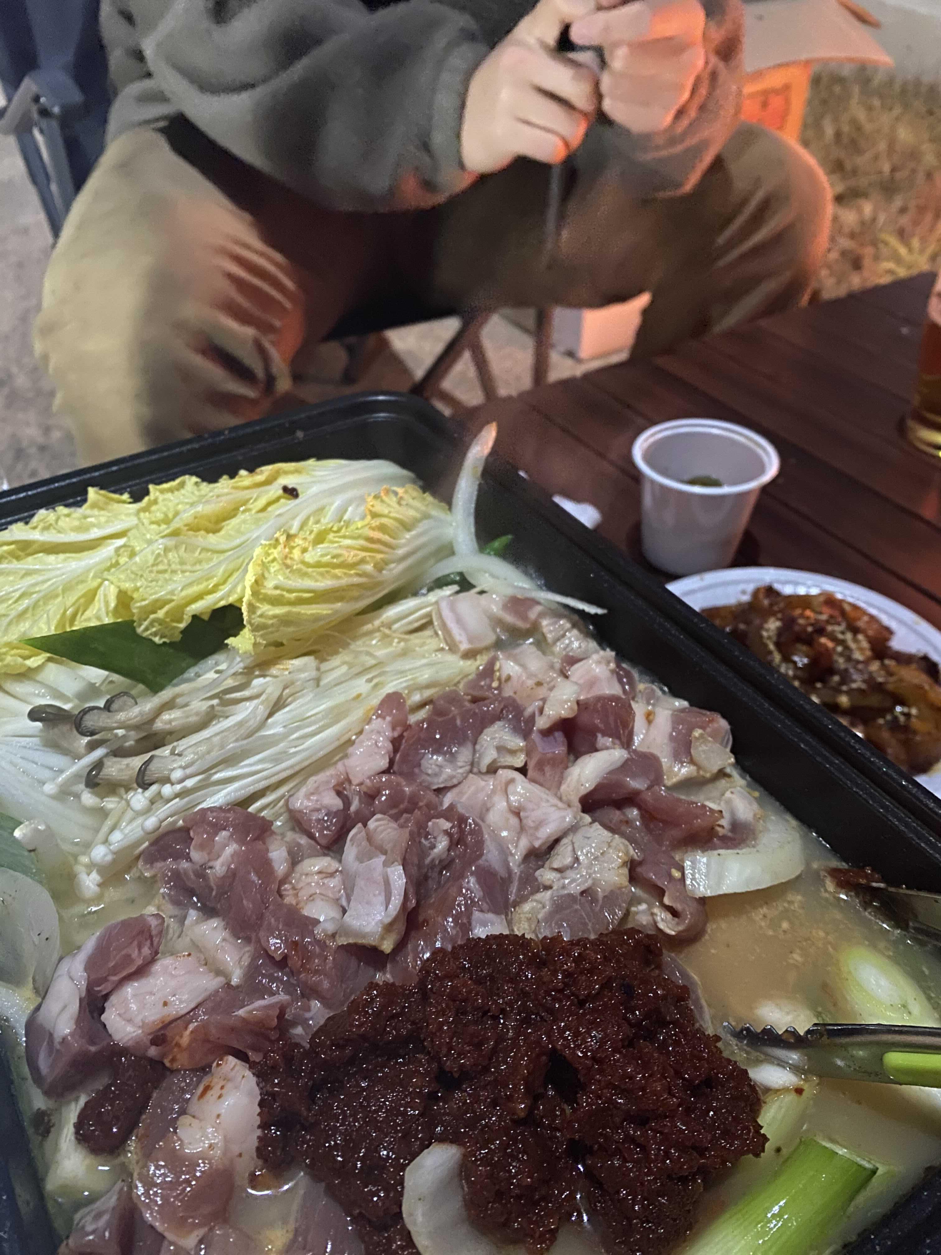 그날 저녁은 새로 산 캠핑테이블고ㅏ 의자를 개시하려고 했지만~~~~~~ 너무 추워서 실패! 그래서 차에서 호키츠네를 먹었다 😋