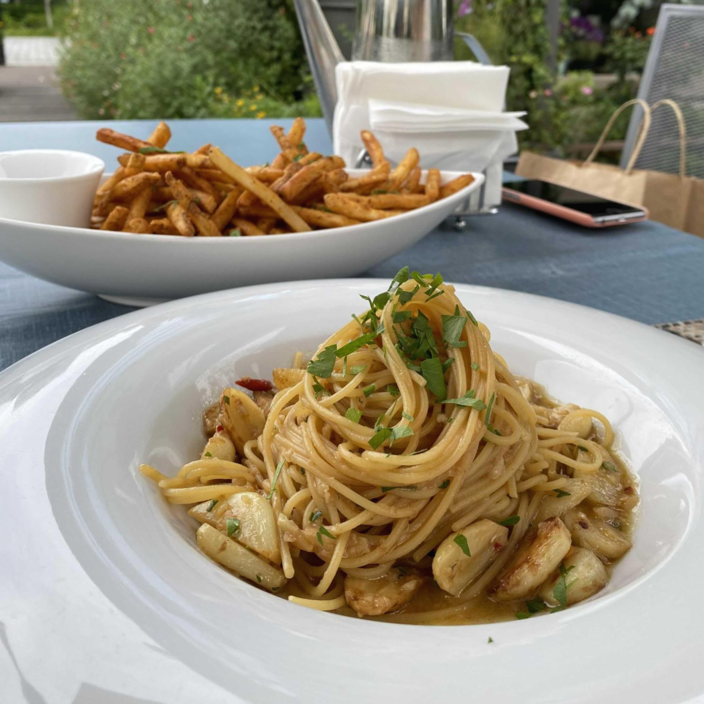 여기 알리오올리오 진짜 맛집이네요..? 그리고 감자튀김도 존맛탱. 피자는 쏘쏘.