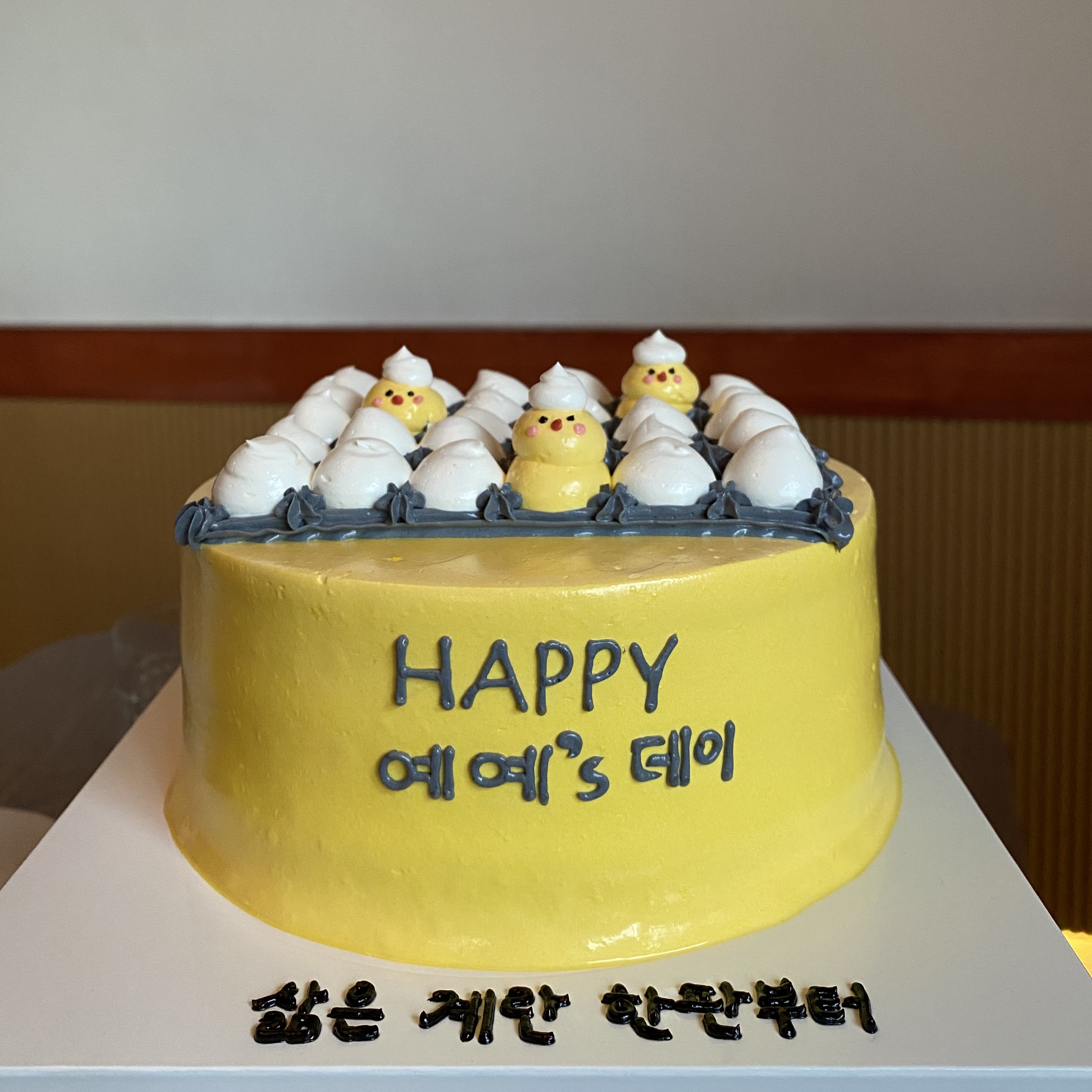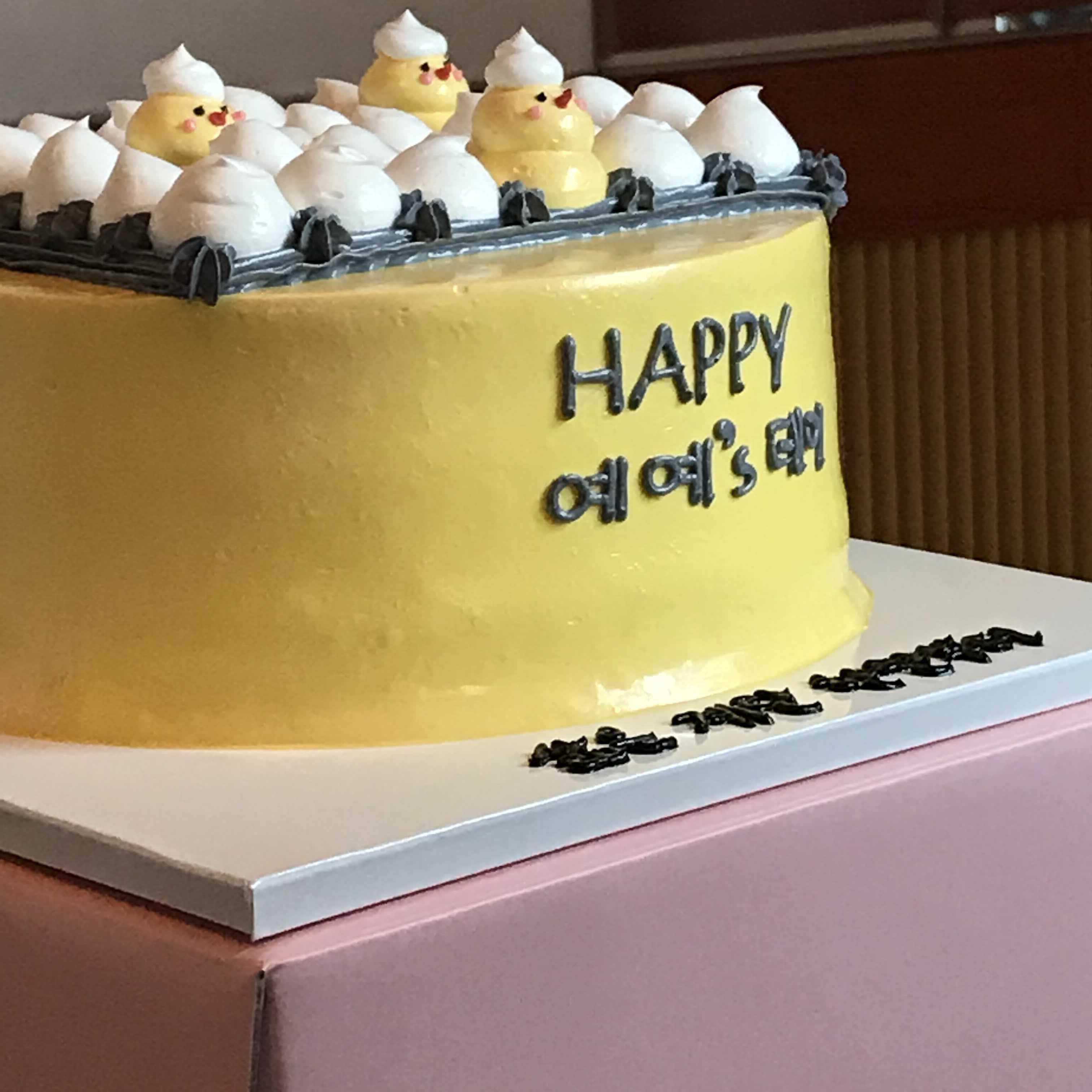 그리고 삼덕동 마카난에서 세 번째 생일 파티는 어학당 꽁주들이랑! 예예는 후배들 덕분에 너무너무 행복해뚀요 진짜 해피 예예쓰 데이~ 삶은 계란 한판부터 멘트로 너무 맘에 들고용. 케이크 주문했을 줄은 꿈에도 몰라썽. 예예 완전 감동받았자나🙂