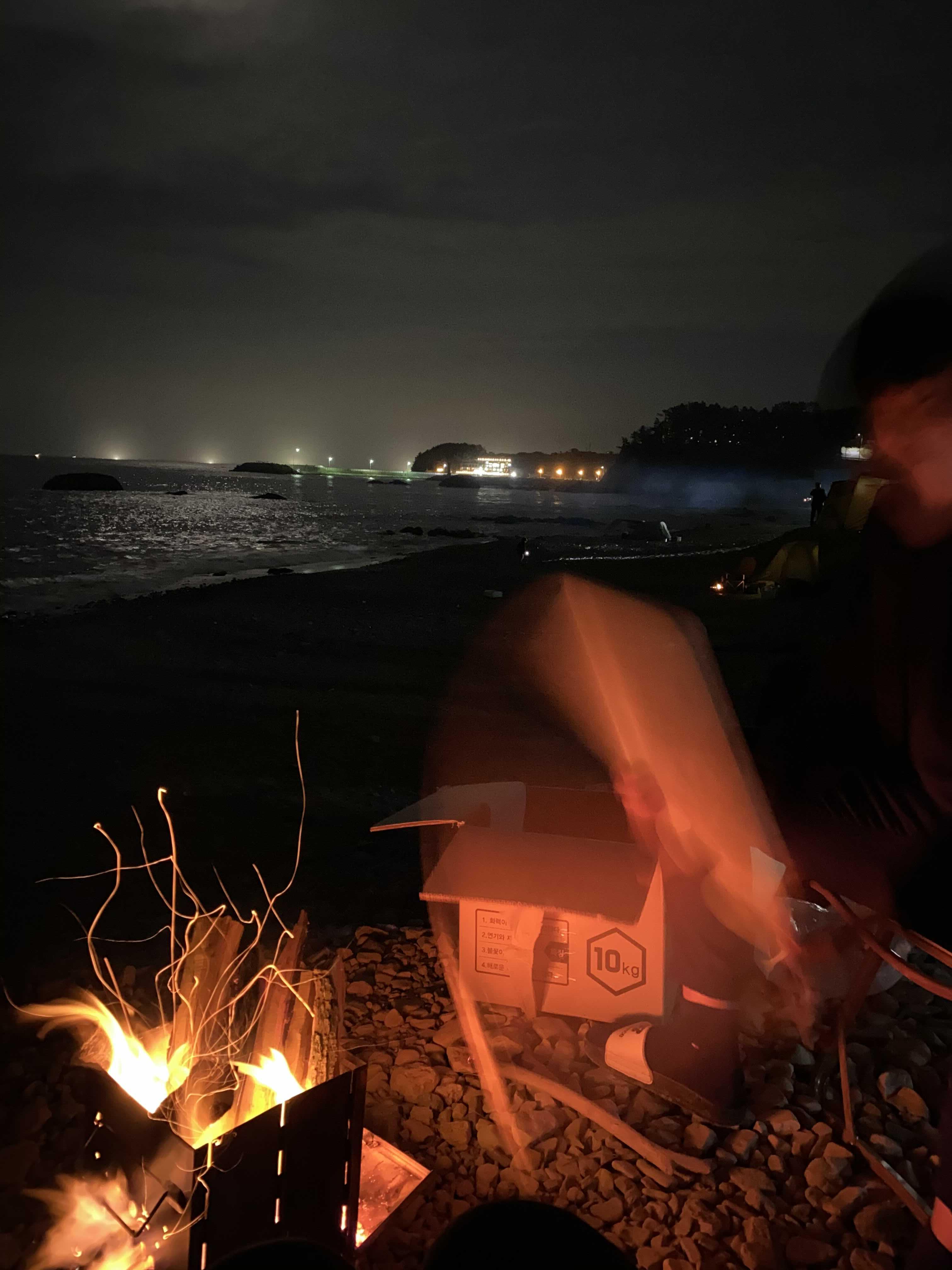 그래서 밥 다 먹고 나서 화로대 옮겨서 바다를 구경하려고 했는데. 이미 깜깜한 밤이 되었다. (ㅋㅋㅋㅋㅋㅋㅋㅋㅋ) 이 날 너무 아쉬워서 다음엔 꼭 차박하러 오자! 캠핑하자! 라고 했는데. 집에 가기 너무너무 아쉬운 밤이었다.