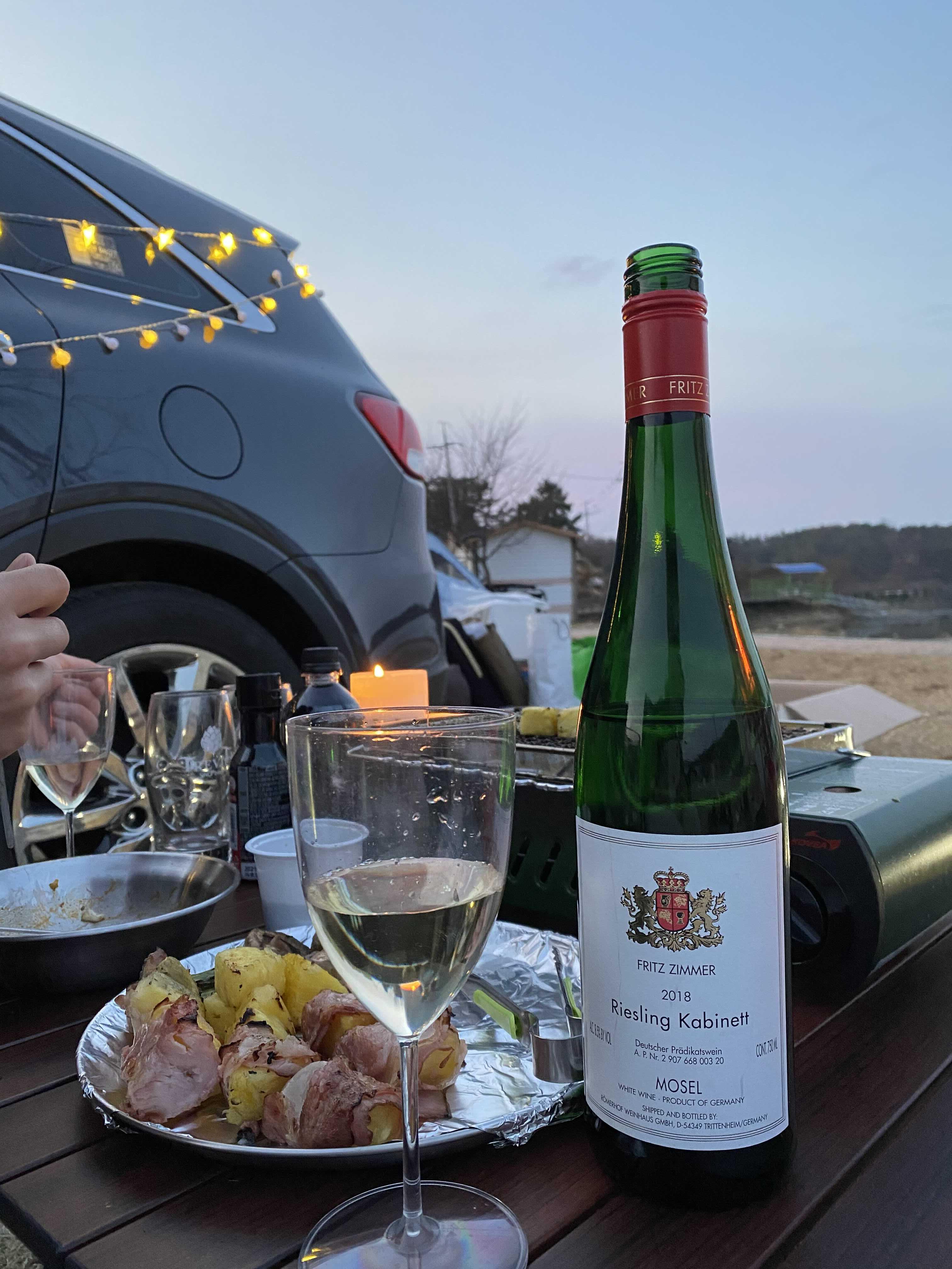 파인애플 베이컨 꼬치랑 리슬링 🥂 이때부터 시작인가요,,, 보라돌이가 계속 술을 마셔도 안 취한다고 한 것이... ㅋㅋㅋ