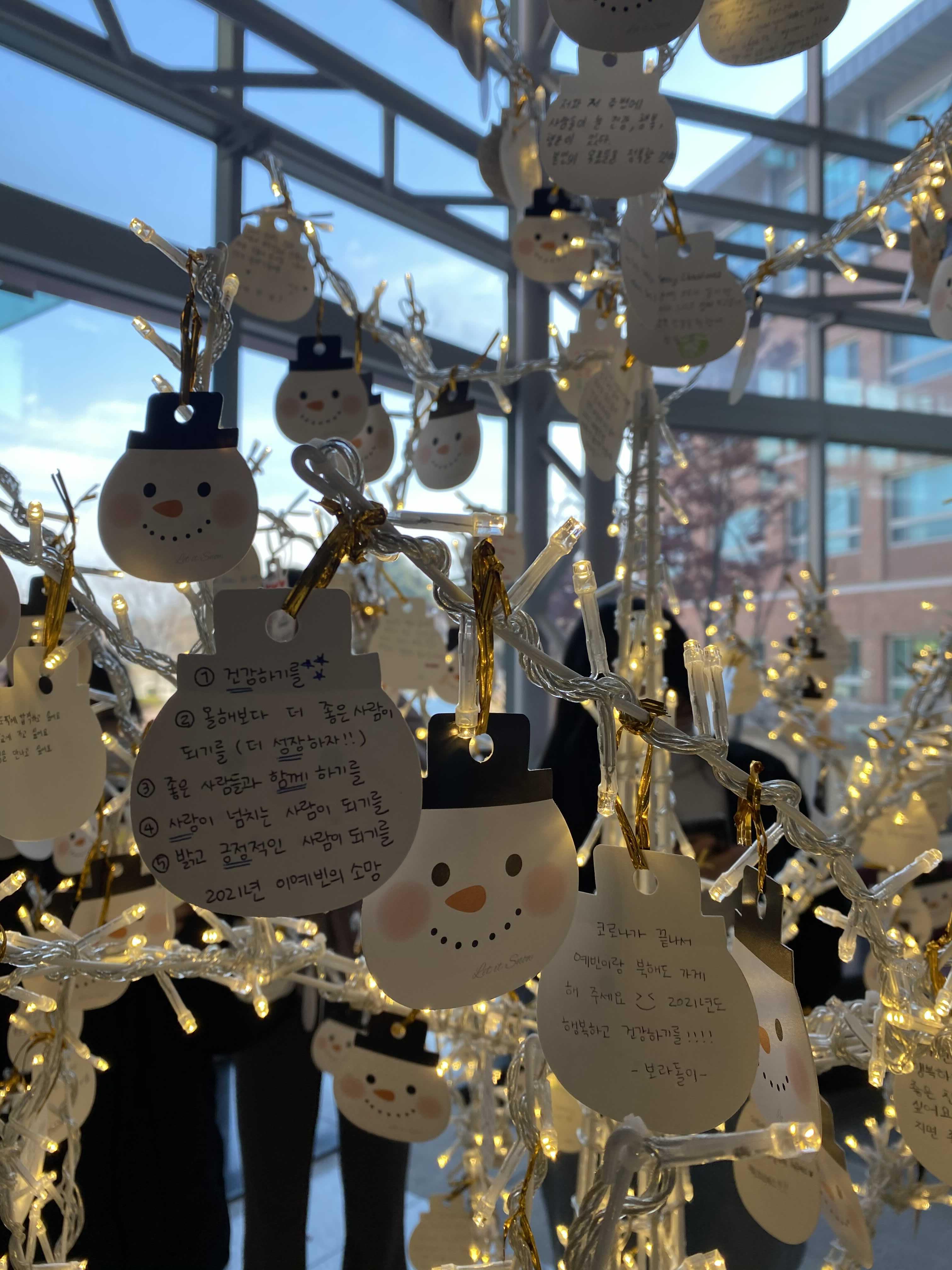 1층에 연말을 맞아 소원트리가 있어서~ 소원 적어서 걸었어요