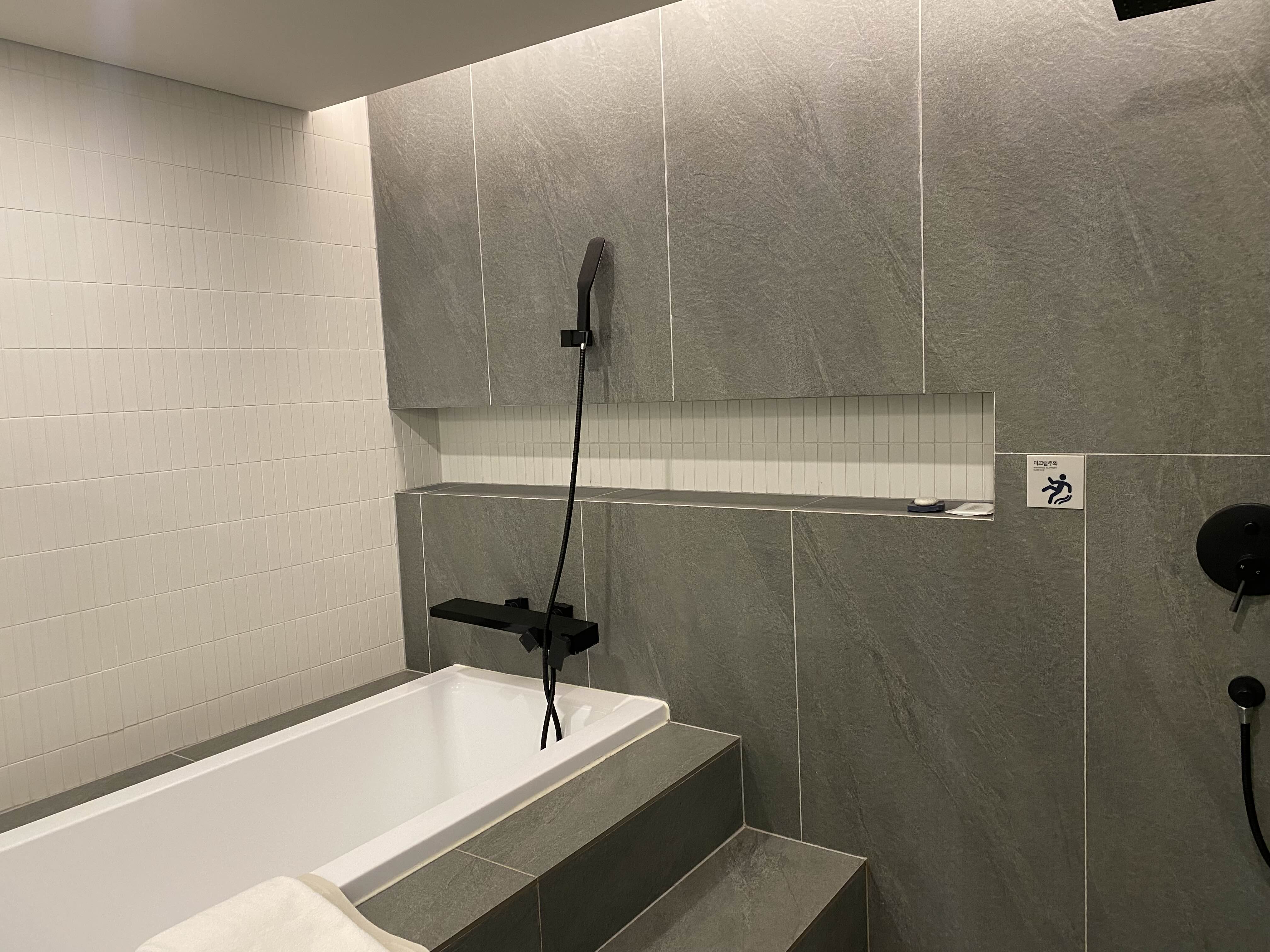 욕조와 샤워기가 있는 공간과 화장실이 분리되어 있어요. 그래서 아주 좋았어요. :-) 입욕제도 챙겨 갔었는데 결국 못 써 보고 .. ㅎㅎ... 다시 들고 옴..