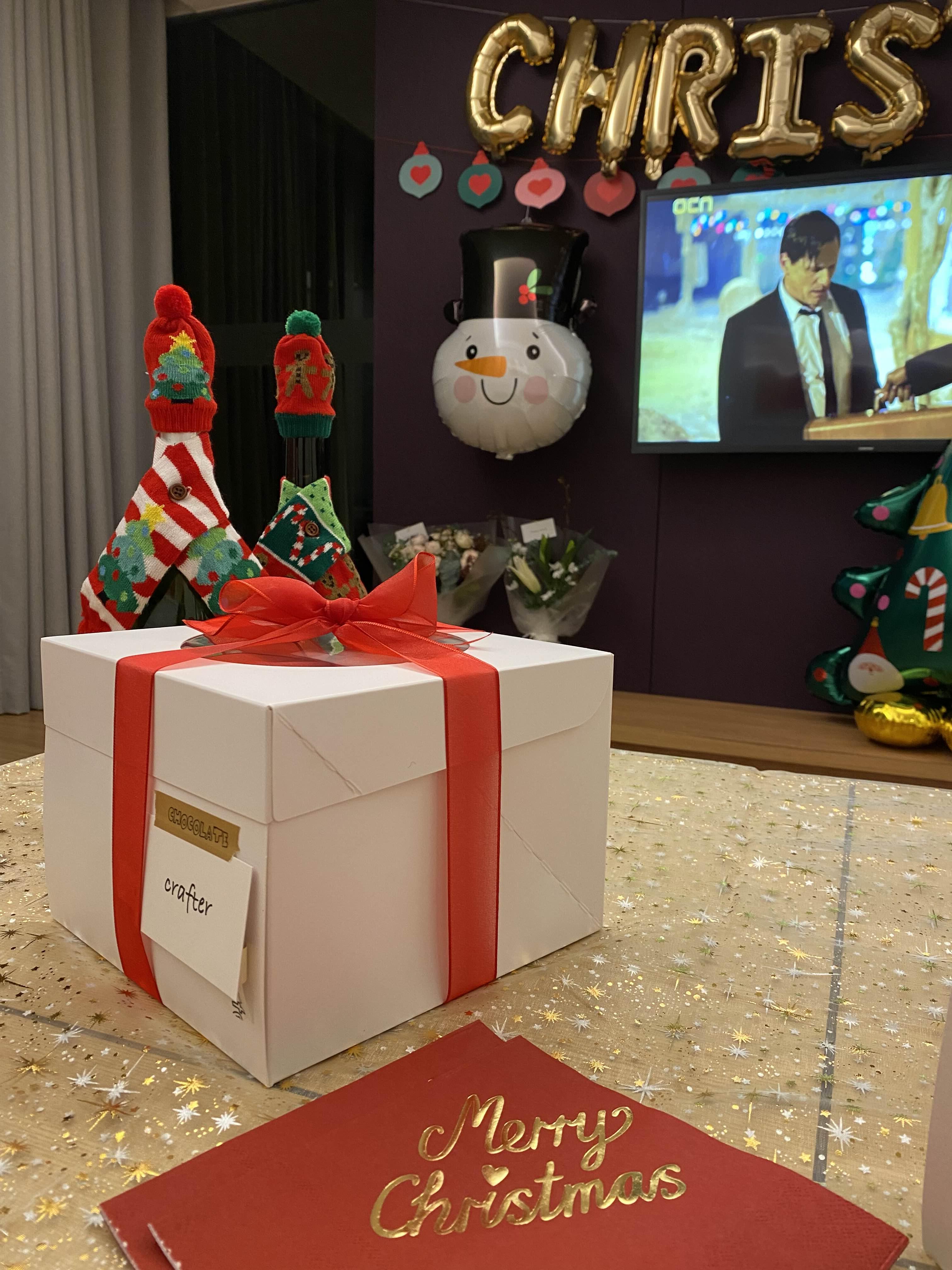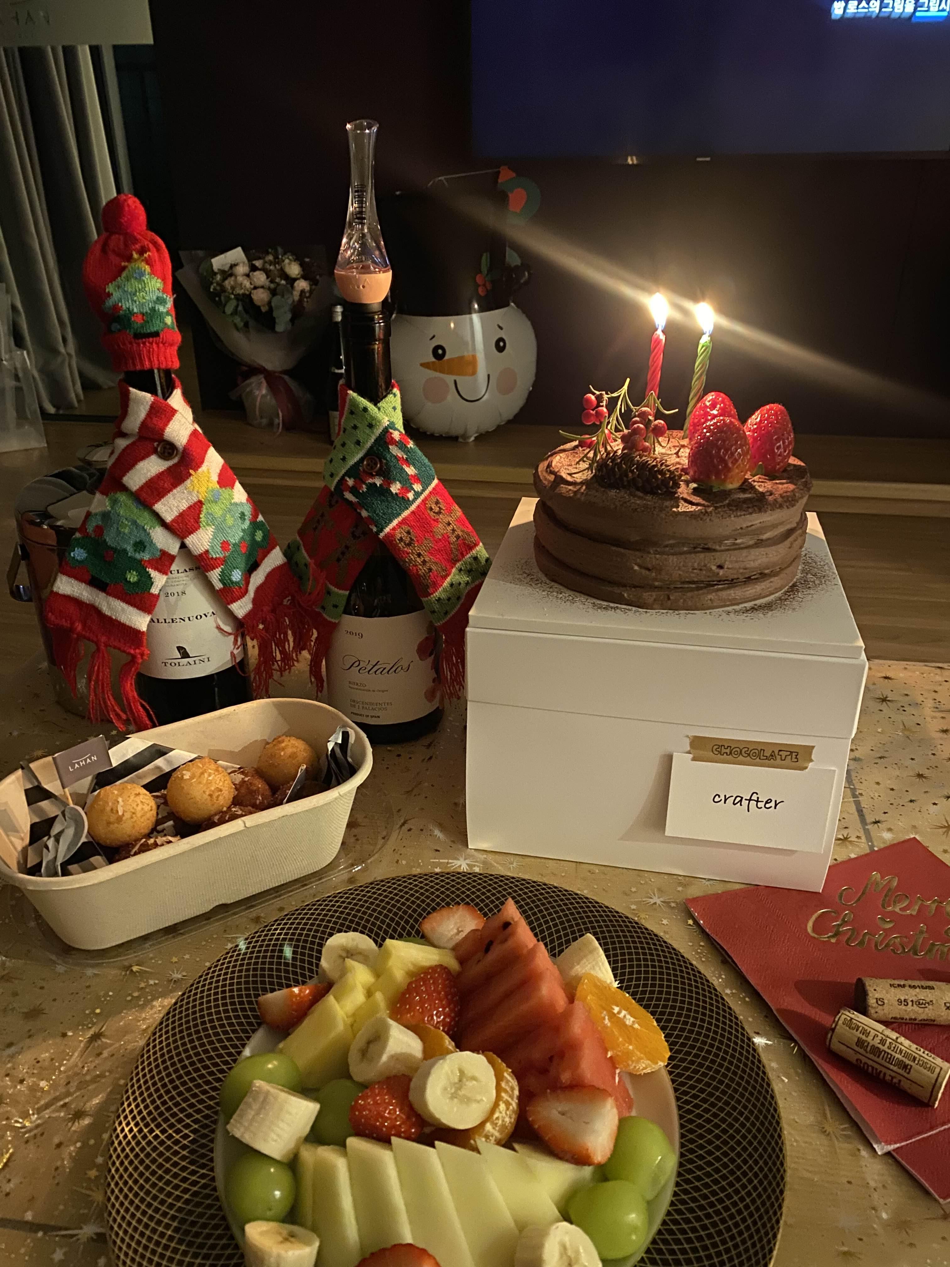 홀리데이비지터샵에서 산 와인 목도리와 모자. 넘 귀여웡. 그리고 크래프터의 크리스마스 케이크. 이번에 딸기 바나나 초코는 처음 먹어보는 맛이었는데 크래프터는 언제나 옳다. 옳아. 준비한 테이블보와 크리스마스 냅킨도 모두 플라잉타이거 제품! 이제 무조건 파티용품은 플라잉타이거다.. ㅎㅎㅎㅎ..