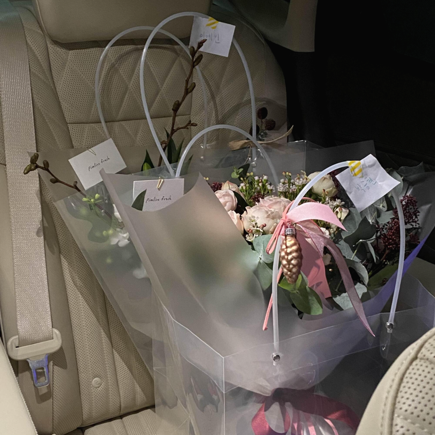 매번 꽃다발 주는 걸 당연하다는 듯 얘기한 게 마음에 걸려서 이번 크리스마스엔 몰래 꽃다발을 준비해 보았는데요. 세컨드 프로젝트에 픽업을 가니 웬 걸.. 꽃다발 두 개가 놓여져 있는데 하나는 이예빈.. 하나는 박승현? 우리 커플 서로를 위해 몰래 준비했지 뭐람.. 근데 내가 먼저 픽업을 가는 바람에 내가 둘 다 픽업; (ㅋㅋㅋ) 이번 크리스마스도 예쁜 꽃 준비해 준 핌리코프레쉬 사장님께 감사의 말씀 올립니다.