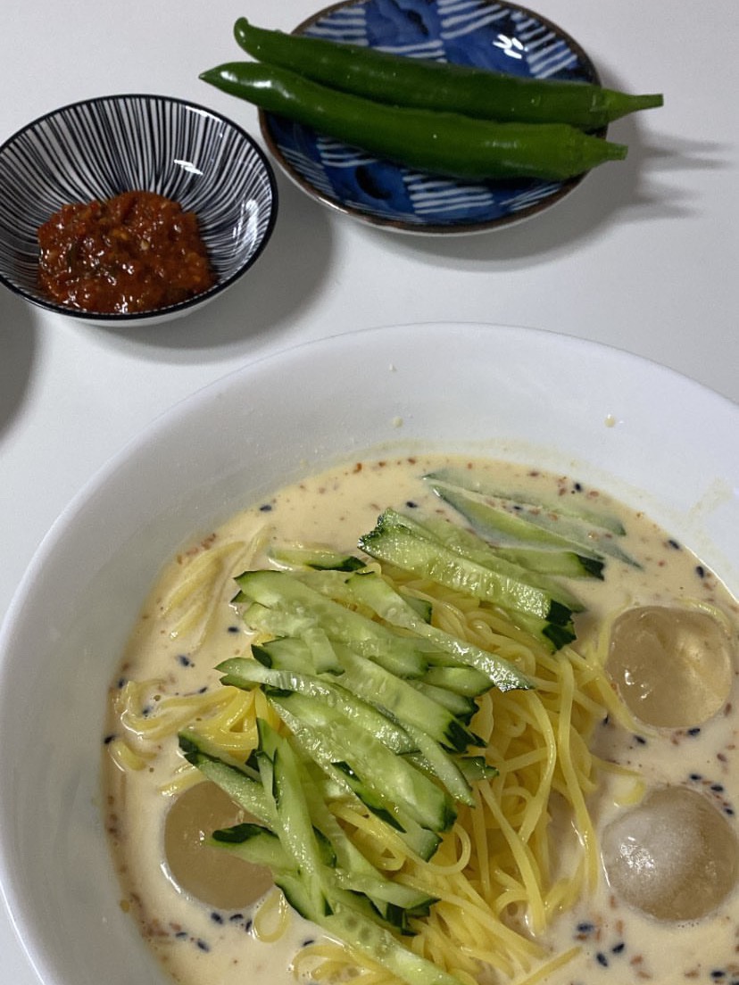 테니스 끝나고 너무 더워서 집에 가는 길에 엄마한테 콩국수 해 달라고 부탁했다. 근데 콩국수에 왜 위스키 온더락 얼음을 넣어 주셨는지 의문..이네.... 심지어 양도 대왕 콩국수였다.. 먹고 배불러 죽을 뻔 ㅋㅋㅋㅋ